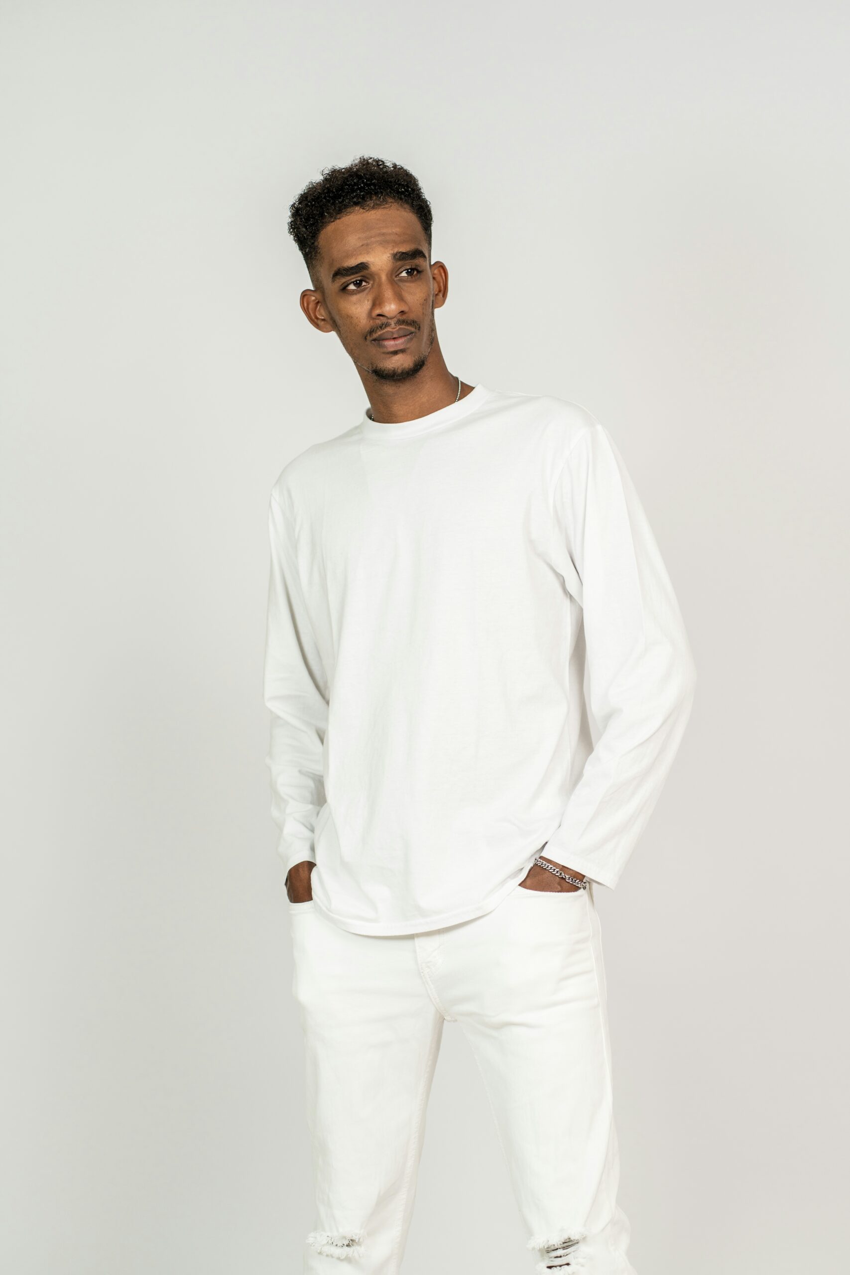 تيشيرت ابيض بكم طويلتيشيرت ابيض بكم طويل